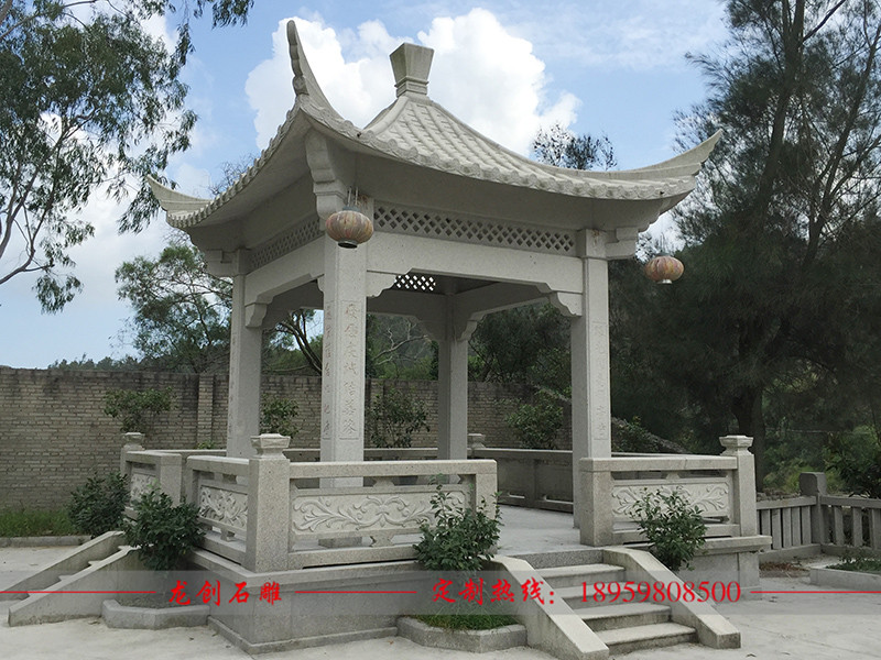 第五,關(guān)于石雕亭子的色彩最好配合其五行之色,但忌相克之色,最忌藍瓦白身,黑色亦是一忌。