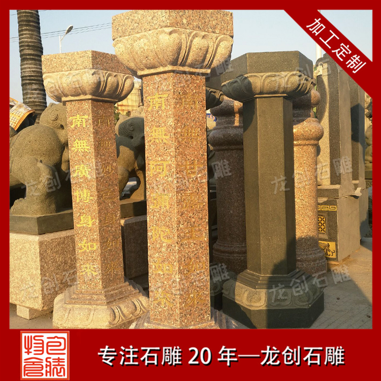 出食臺(tái)有各種不同形制、材質(zhì),造型上沒(méi)有固定的法制,多以幢型居多,常見(jiàn)的是石材,也有木刻。高度至少一百多公分以上,常見(jiàn):圓形長(zhǎng)柱、四面柱、八角型柱等不同形狀。石柱,可分為上、中、下三部分,上部多見(jiàn)以蓮花造型為臺(tái),中段為石柱,柱上??逃谐鍪撑_(tái),或與施食儀軌相關(guān)的佛號(hào)或字句,如七如來(lái)(南無(wú)多寶佛、南無(wú)寶勝佛、南無(wú)妙色身佛、南無(wú)廣博身佛、南無(wú)離怖畏佛、南無(wú)甘露王佛、南無(wú)阿彌陀佛)、四如來(lái),或南無(wú)阿彌陀佛等佛名圣號(hào),或刻「法力不思議」等字樣。有些大型石柱,甚至刻有七尊佛像,或其他吉祥圖案。下部常見(jiàn)以蓮花為底座。有些在臺(tái)柱中段處,雕刻樓臺(tái)欄循,或增加底部四方臺(tái)階。重要的乃是石柱上方或中段一處,可供平放些許食物之平坦處,有些亦設(shè)有一處可供插香燃香,亦可見(jiàn)香器、香座或香托等。