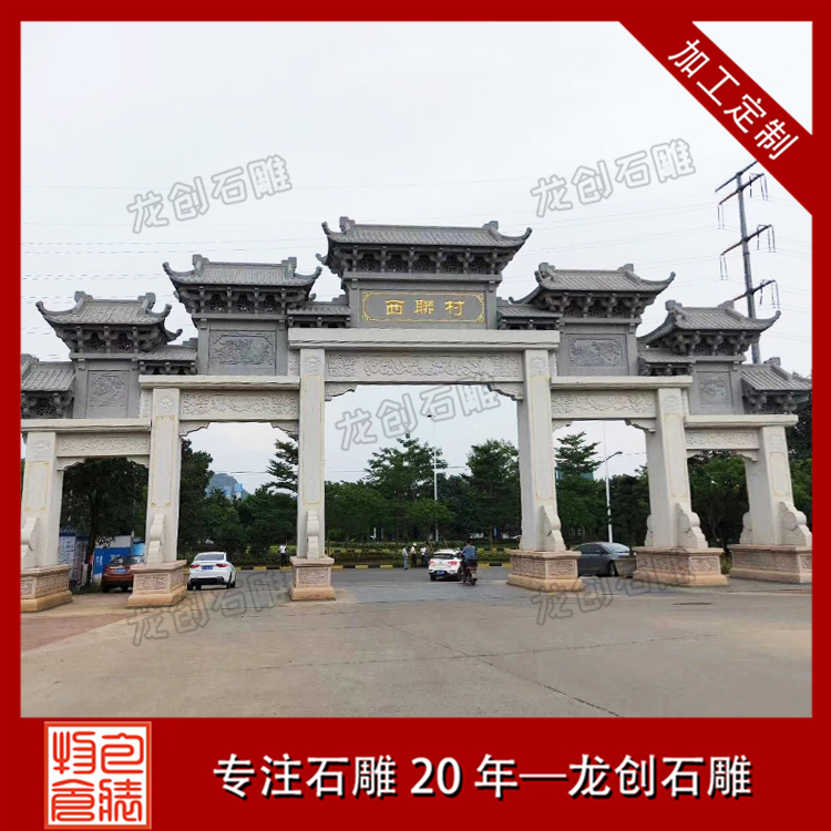 石牌坊是一種具有紀(jì)念性的獨(dú)特的建筑物,從牌坊的建造意圖來說,可以分為三類:一類為標(biāo)志性;二類為陵墓牌坊;三類為紀(jì)念性的,根據(jù)想表達(dá)的意圖來建筑不同的牌坊。在現(xiàn)代,牌坊一般用來為表彰與紀(jì)念人物或表示美觀的建筑物,多建筑在市街或名勝古跡等處。