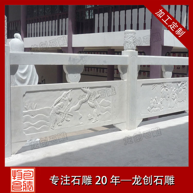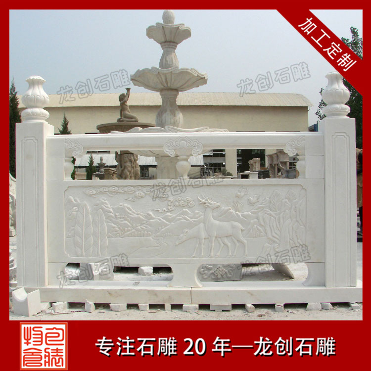 2、漢白玉欄桿的雕琢工藝:雕琢工藝的難易程度也是影響漢白玉欄桿價(jià)格的重要要素之一。一般咱們根據(jù)客戶(hù)供給的雕琢設(shè)計(jì)圖進(jìn)行加工,常見(jiàn)的雕琢工藝有浮雕、線(xiàn)雕、透雕、陰雕、圓雕、鏤雕等等。有的石雕欄桿用線(xiàn)雕,有的石雕欄桿用浮雕,雖然規(guī)格相同,但是由于雕琢的工藝不同形成消耗的工時(shí)不同,石雕欄桿價(jià)格自然也是不一樣的。