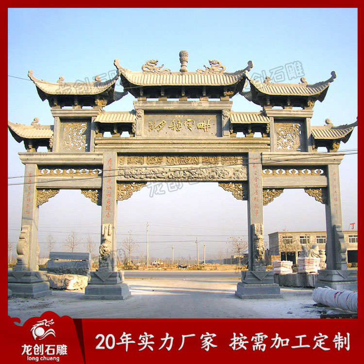 現(xiàn)在國家非常重視鄉(xiāng)鎮(zhèn)的建設(shè),推進(jìn)新農(nóng)村建設(shè)及民俗特色小鎮(zhèn)的推廣等等,因此一些具有地方性特色的建筑都被很好的應(yīng)用,如村口石雕牌坊就是其中的一種。隨著社會(huì)的發(fā)展現(xiàn)在鄉(xiāng)鎮(zhèn)路口石雕牌坊款式也越來越多,那么常見的三門樣式都有哪些?