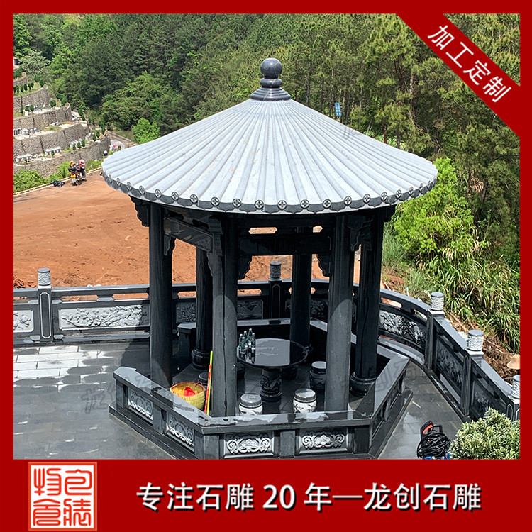 此陵園石雕涼亭采用的是青石雕刻的單層石亭子,石雕欄桿也是采用青石材質(zhì)的石欄桿,欄板上面雕刻了花草圖案,看上去特別的精美,墓碑周圍的石材浮雕是二十四孝圖案,其他地方的石材浮雕圖案是花草鳥獸,整個(gè)陵園通過這些石雕制品的裝飾,顯得很有檔次。