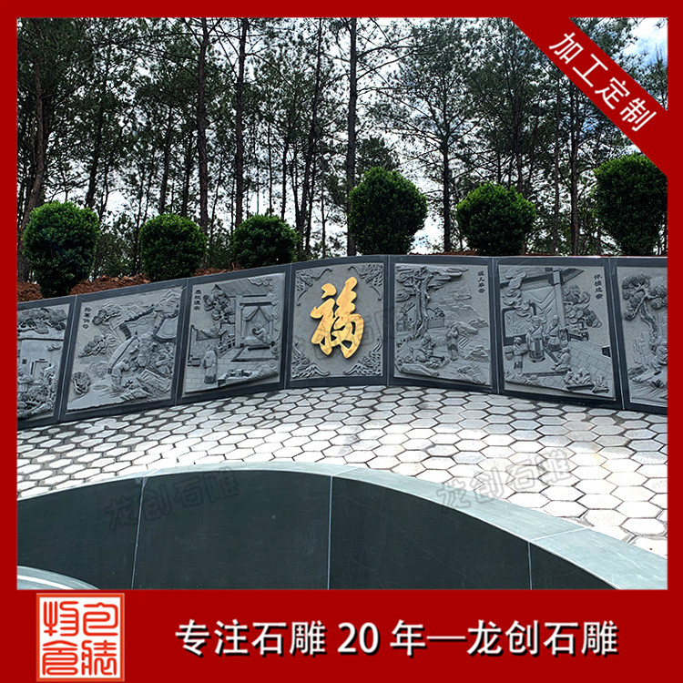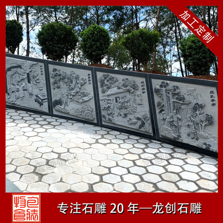在墓園會(huì)使用到的石雕制品有很多,除了我們一開始會(huì)想到的石雕墓碑以外,還有些墓園會(huì)安裝石雕欄桿和石雕涼亭、石雕浮雕,墓園石雕欄桿除了起到安全防護(hù)作用外,還具有裝飾作用,而石雕涼亭的主要作用就是供人休息用的,石雕浮雕主要作用就是裝飾了,此套石雕墓圍的浮雕圖案是二十四孝。