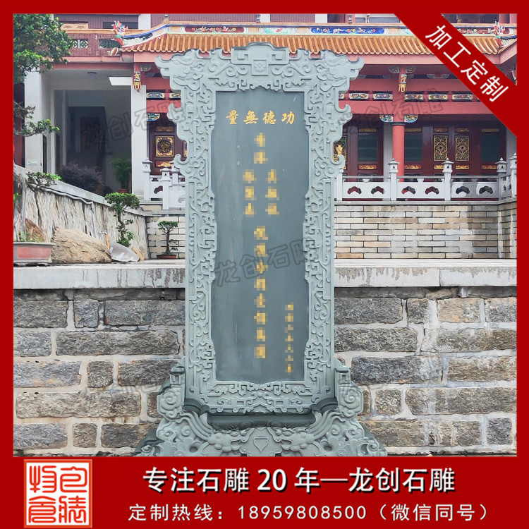 設(shè)計特點:通常由一塊長方形的石頭精心雕刻而成,上面刻有詳盡的文字內(nèi)容,如表彰對象的姓名、事跡、貢獻(xiàn)等,以及相關(guān)的圖案或浮雕,以生動形象地展現(xiàn)功德事跡的輝煌與偉大。