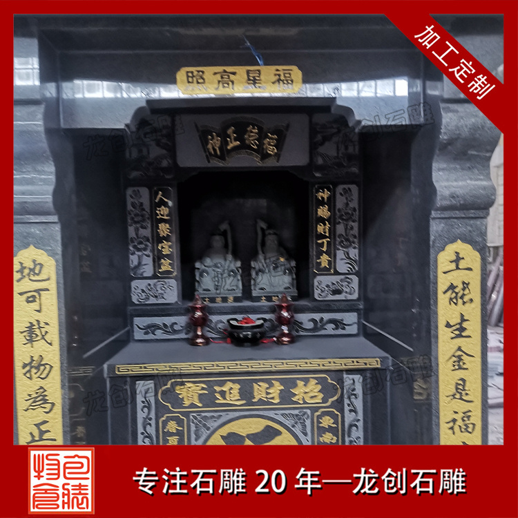 在浙江寧波的金蓮寺改造項(xiàng)目中,一座精美的石雕土地廟成為點(diǎn)睛之筆。這座土地廟采用優(yōu)質(zhì)芝麻黑654石材,質(zhì)地堅(jiān)硬,色澤溫潤(rùn)。廟身的雕刻工藝精湛絕倫,高2.9米,寬1.36米,深度1.63米,整體造型古樸典雅,遵循傳統(tǒng)廟宇建筑風(fēng)格,飛檐斗拱線條流暢,比例協(xié)調(diào);墻體厚實(shí),雕紋精美,線條流暢。其內(nèi)部空間布局合理,土地神像安置其中,更顯威嚴(yán)。