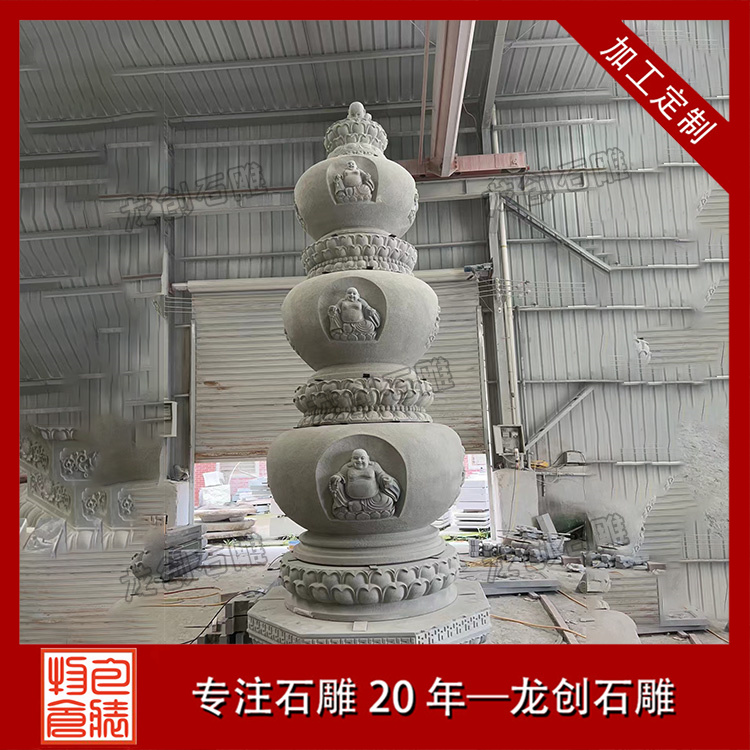 此塔選用質(zhì)地堅(jiān)硬、耐風(fēng)化的花崗巖材質(zhì),確保能歷經(jīng)歲月洗禮而不損。雕刻工藝精湛,綜合運(yùn)用圓雕、浮雕。塔身主體的彌勒佛像采用深浮雕,立體呈現(xiàn)彌勒大肚便便、笑容可掬的形象,面部表情細(xì)膩,神態(tài)慈祥。塔身上的蓮花等裝飾圖案則運(yùn)用深淺浮雕,線條流暢,層次分明。