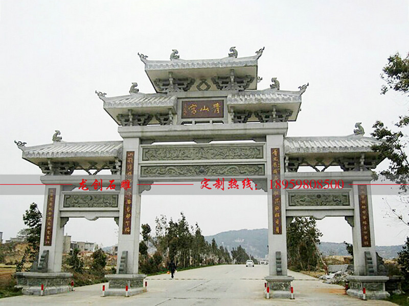 石雕石頭牌坊建筑中的石牌坊雕刻集合傳統(tǒng)技藝,將寓意美好吉祥、幸福安康等各種事物與民間技藝融為一體,從這些石牌坊浮雕、和石牌坊獅子雕刻部件不僅能夠看出人們對美好生活的向往與追求,也映射出傳統(tǒng)藝人的高超技藝。石雕石頭牌坊不僅體現(xiàn)了建筑的工藝特色,其建筑及地理位置也十分講究風(fēng)水,實(shí)際上慎重考慮建筑外部自然環(huán)境的選擇,而后又發(fā)展人為創(chuàng)造理想的小環(huán)境。