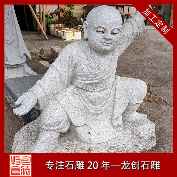 石雕精品小沙彌就是用優(yōu)質(zhì)石材雕刻制作的小和尚造型,一般都是10歲以下的孩童雕塑。由于小孩的天真爛漫,各種各樣有趣的造型都會(huì)做出來,比如下棋的小沙彌,睡姿的小沙彌、嬉戲的以及功夫小沙彌,打掃衛(wèi)生的等等,也有一些修行的小沙彌造型,比如參禪打坐的造型,敲木魚的造型。石雕小沙彌的百態(tài)千姿是寺廟諸佛菩薩雕塑里面較多的一種,也是讓信眾們發(fā)自內(nèi)心的喜愛和尊敬的一種佛教弟子塑像。