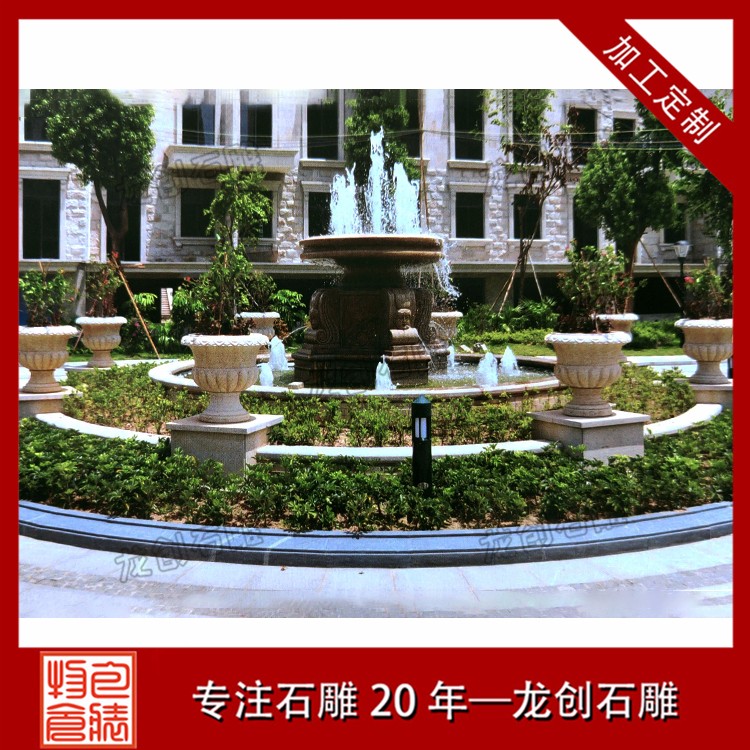 園林景觀石雕噴泉水缽雕塑是一種石材做成的盆狀或者罐狀的石雕作品,一般來(lái)說(shuō)周邊有雕刻的紋路以及雕刻的附加飾品,然后組合成一個(gè)比較大的裝水,儲(chǔ)水的容器,并且部分石雕噴泉雕塑利用水壓把水從石雕噴泉雕塑的上端噴或者流出,形成一種特別的景象的石雕產(chǎn)品。石雕噴泉雕塑作為一種裝飾產(chǎn)品,所以一般適用于比較高檔的裝飾,不過(guò)隨著社會(huì)的發(fā)展,現(xiàn)在的水平高中低檔的價(jià)格可以滿足不同客戶的需求,從高端裝飾慢慢的成為了家居擺件,公司擺件,公園擺件,景區(qū)擺件等等。