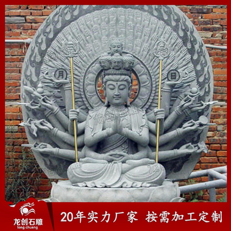 石雕千手觀音并不是真的有千手和千眼,我們常說的千手觀音代表著無邊之意,石雕千手觀音中的千手代表一千輪王,千眼代表一千尊佛,它的含義是觀世音菩薩的手多、眼多、智慧多、有求必應(yīng)。