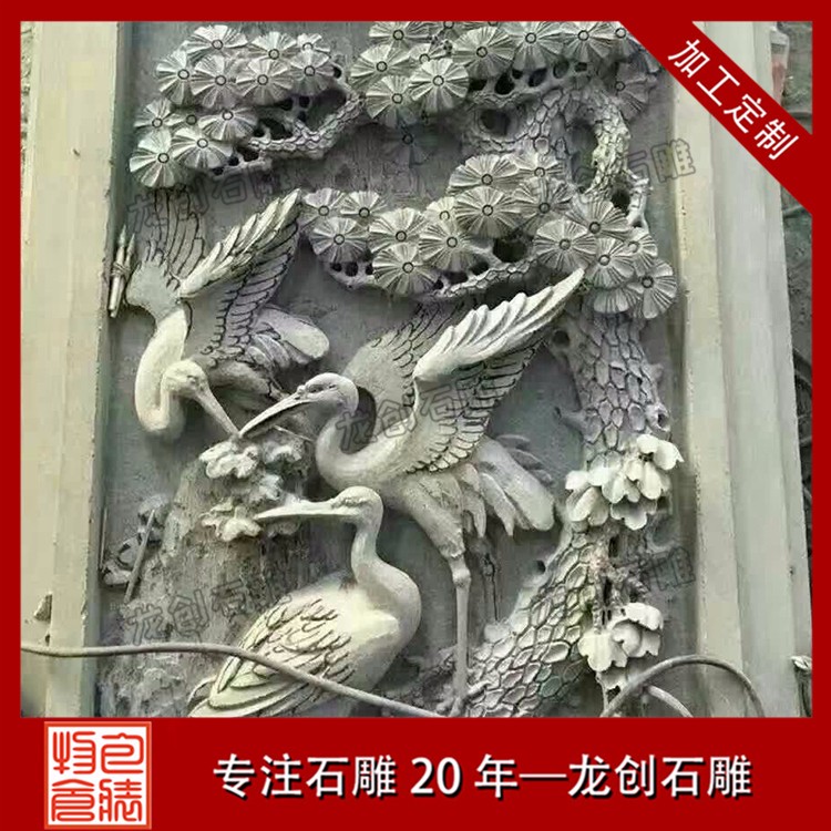 而想要非常明顯的凹凸感、立體感,就可以選擇高浮雕手法的松鶴延年浮雕照壁。這種浮雕具有很強(qiáng)烈的層次感和空間立體感,我們可以非常直觀的感受到它的浮雕樣式。雕刻出來(lái)的松鶴延年圖案,也讓人感到非常美觀。