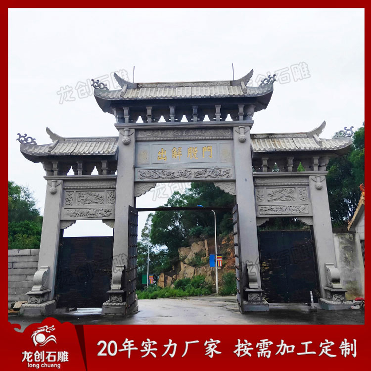 如今,石雕牌坊是建造較為普遍的牌樓類型,被廣泛應(yīng)用于不同的區(qū)域空間。以花崗石為代表的花崗巖石牌坊,花崗巖牌樓其實就是花崗巖石牌坊,現(xiàn)在牌坊和牌樓已經(jīng)不區(qū)分了,花崗巖制作的牌坊不僅具備著傳統(tǒng)牌坊的建筑精髓,也擁有了更加豐富的牌坊樣式。那么,下面由惠安龍創(chuàng)石雕廠對花崗巖石牌坊價格及選購事項進(jìn)行介紹。
