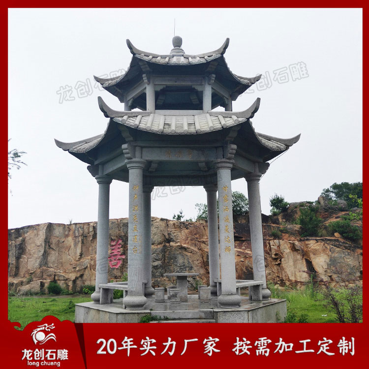 中國(guó)每一處園林都少不了石亭子。石亭子在中國(guó)園林的意境中起到很重要的作用。亭子的造型是多種多樣的,但它們的基本結(jié)構(gòu)是相同的。一個(gè)屋頂,幾根柱子,中間是空的。這樣的建筑物起什么作用呢?它的作用就在于能把外界大空間的景象吸收到這個(gè)小空間中來(lái)。石亭子哪家好?石亭子雕刻廠家就選惠安龍創(chuàng)石雕,專注石雕20年,按需加工定制。