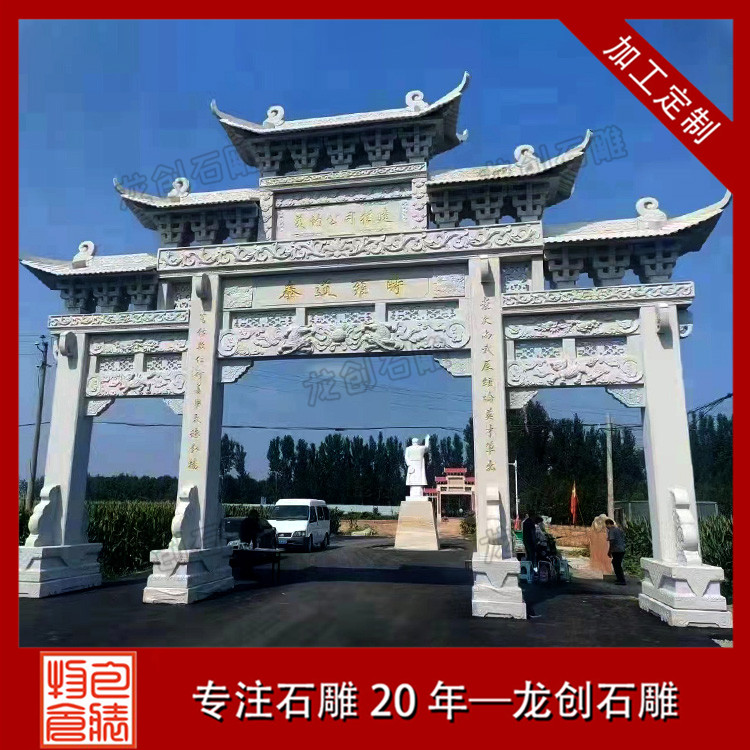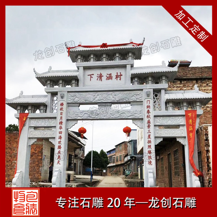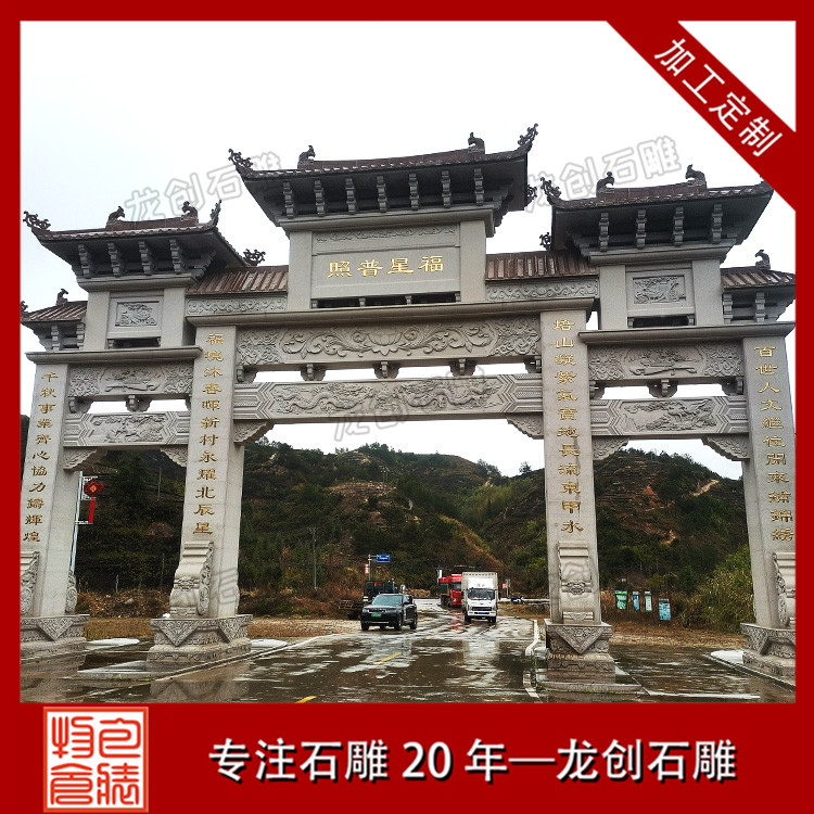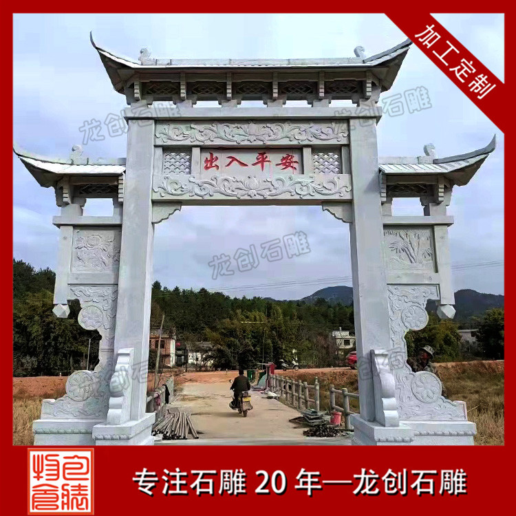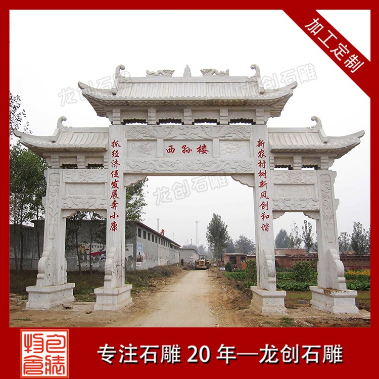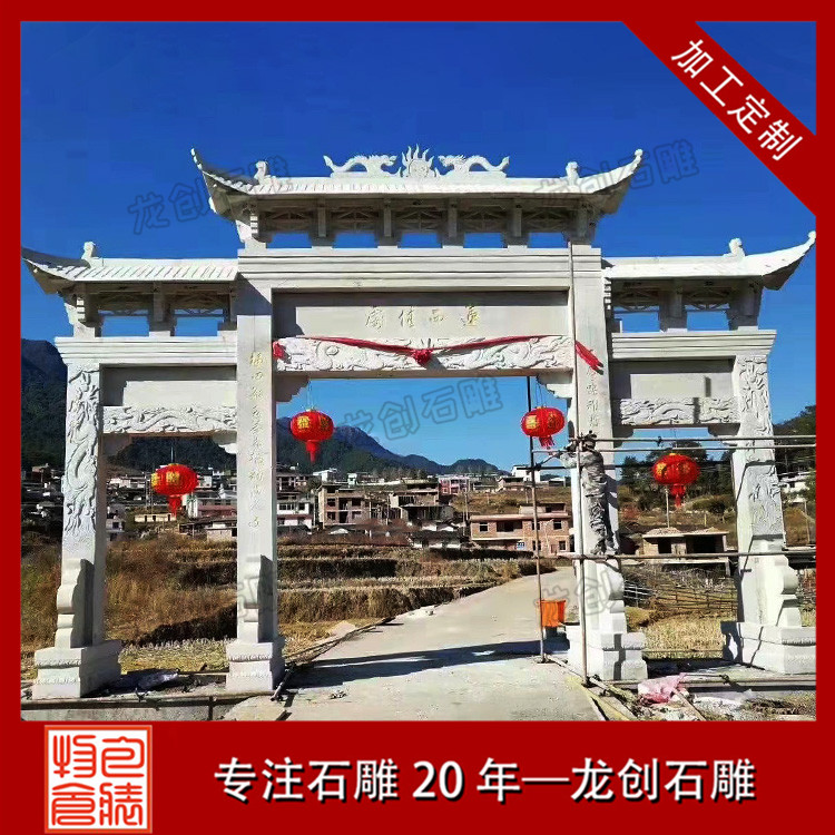 石雕牌坊是我國(guó)傳統(tǒng)古建筑的一部分,村莊石雕牌坊也稱村口石雕牌坊、農(nóng)村石雕牌坊,一般是建在村莊的入口處,村莊石雕牌坊是一種仿古建筑,古樸大方,具有很高的歷史文化價(jià)值和觀賞價(jià)值。