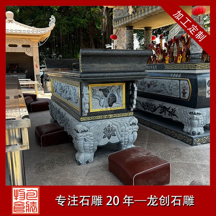 我廠專注石雕工藝多年,提供各類定制化供桌產(chǎn)品,選用優(yōu)質(zhì)花崗巖、青石等天然石材,結(jié)合傳統(tǒng)工藝與現(xiàn)代雕刻技術(shù),確保每一件作品既莊重大氣,又富文化底蘊。