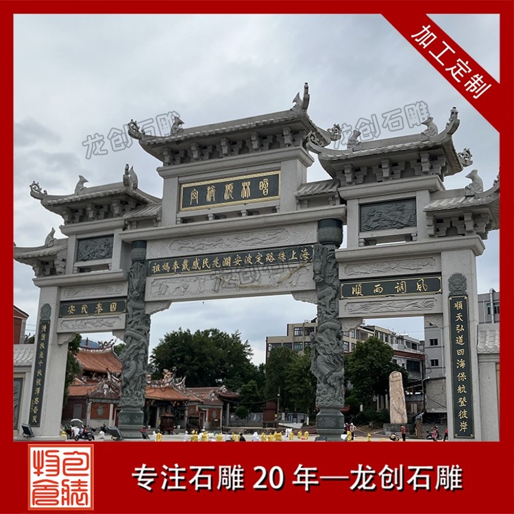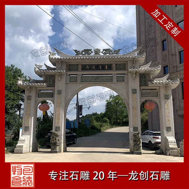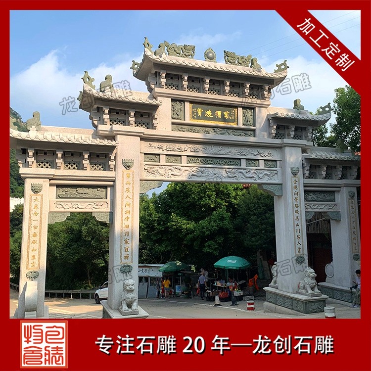 在景區(qū),往往首先映入眼簾的便是一座氣派的石牌坊。在這里,石牌坊扮演的是 “門面擔當” 的角色 。它的首要功能是標識和引導。牌坊上的匾額題字,點明了景區(qū)的名字和意境,告訴游人“由此進入,別有洞天”。更重要的是,它是風景的序言。在設(shè)計上,景區(qū)牌坊的雕刻主題會與內(nèi)部景致相呼應(yīng)。