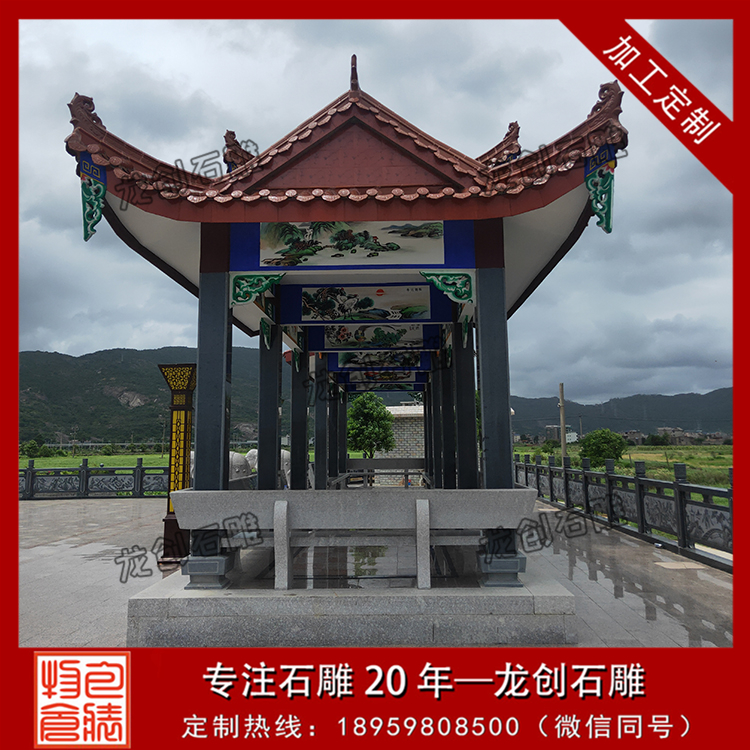 石雕涼亭走廊是供人休息的場所,可利用的石材有大理石、花崗巖、青石等等,不同材質(zhì)造價不一樣,尺寸也是影響涼亭石雕價格的因素,具體報價歡迎咨詢——石雕涼亭走廊廠家龍創(chuàng)石雕。