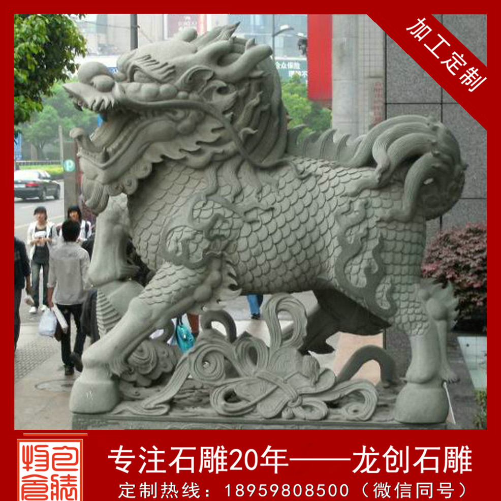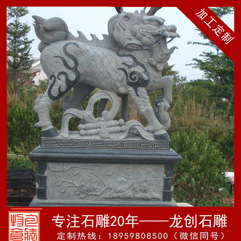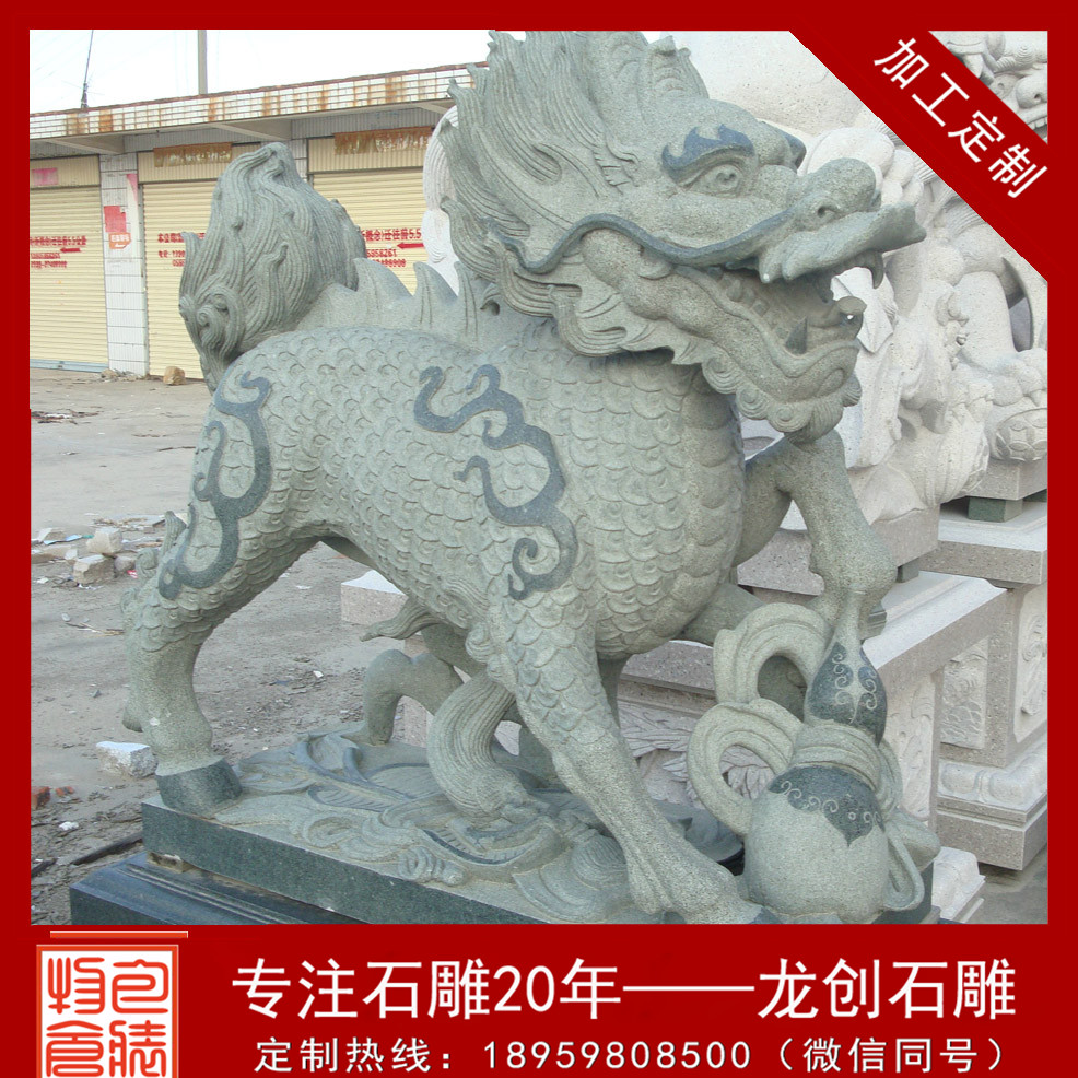 石雕麒麟,是一種聚財(cái)鎮(zhèn)宅神獸,麒麟是古代的仁獸,集龍頭、鹿角、獅眼、虎背、熊腰、蛇鱗、馬蹄、豬尾于一身,乃不祥之寶,從古到今都是公堂上的裝飾,以振官威之用,也是權(quán)貴的意味?!△梓?,不只是祥瑞的意味,麒麟文化還反映出中華民族的大交融,是中華民族團(tuán)結(jié)統(tǒng)一的意味。石雕麒麟可以消災(zāi)解難,催財(cái)升官,深受人們喜歡。那么石雕麒麟是怎樣雕琢出來(lái)的呢?