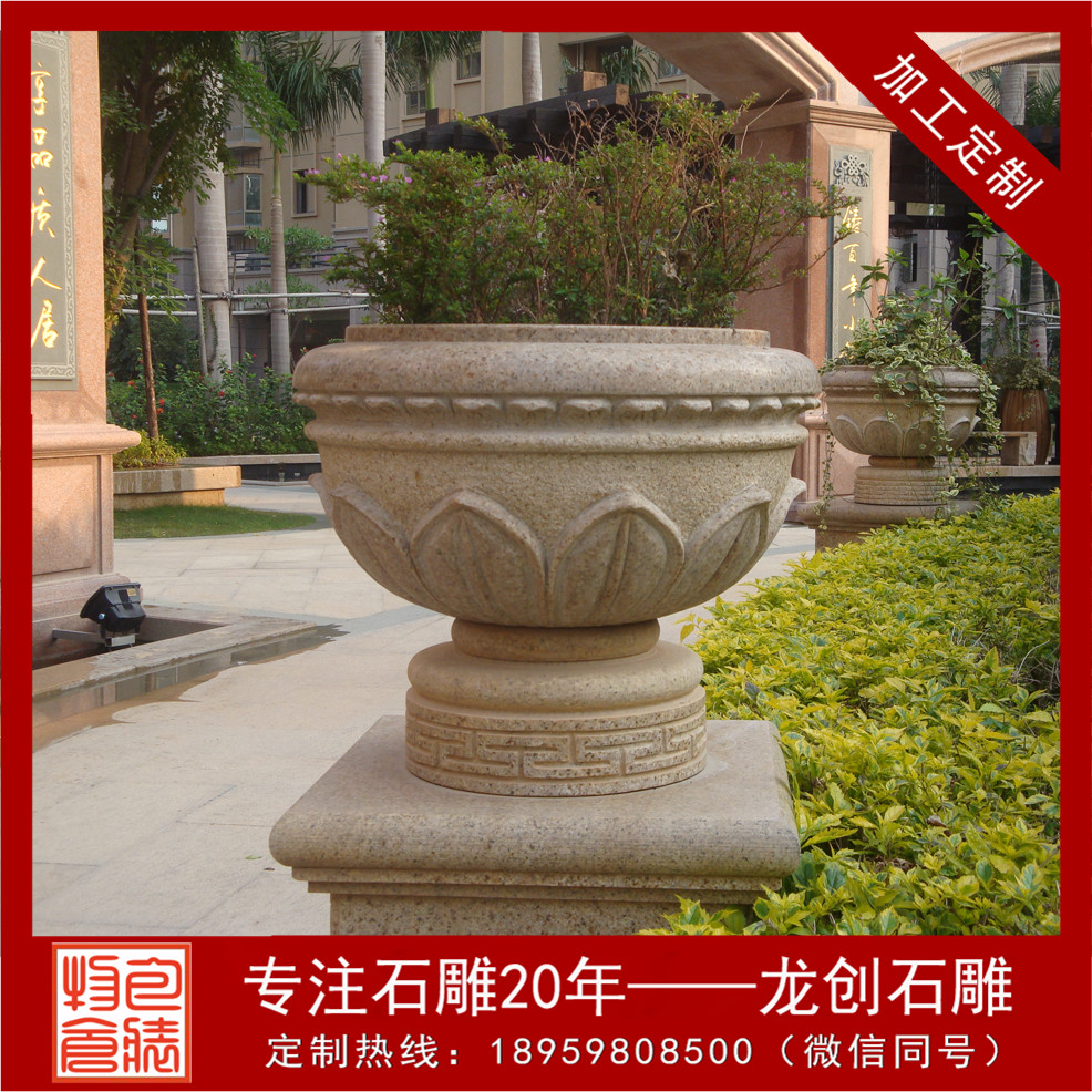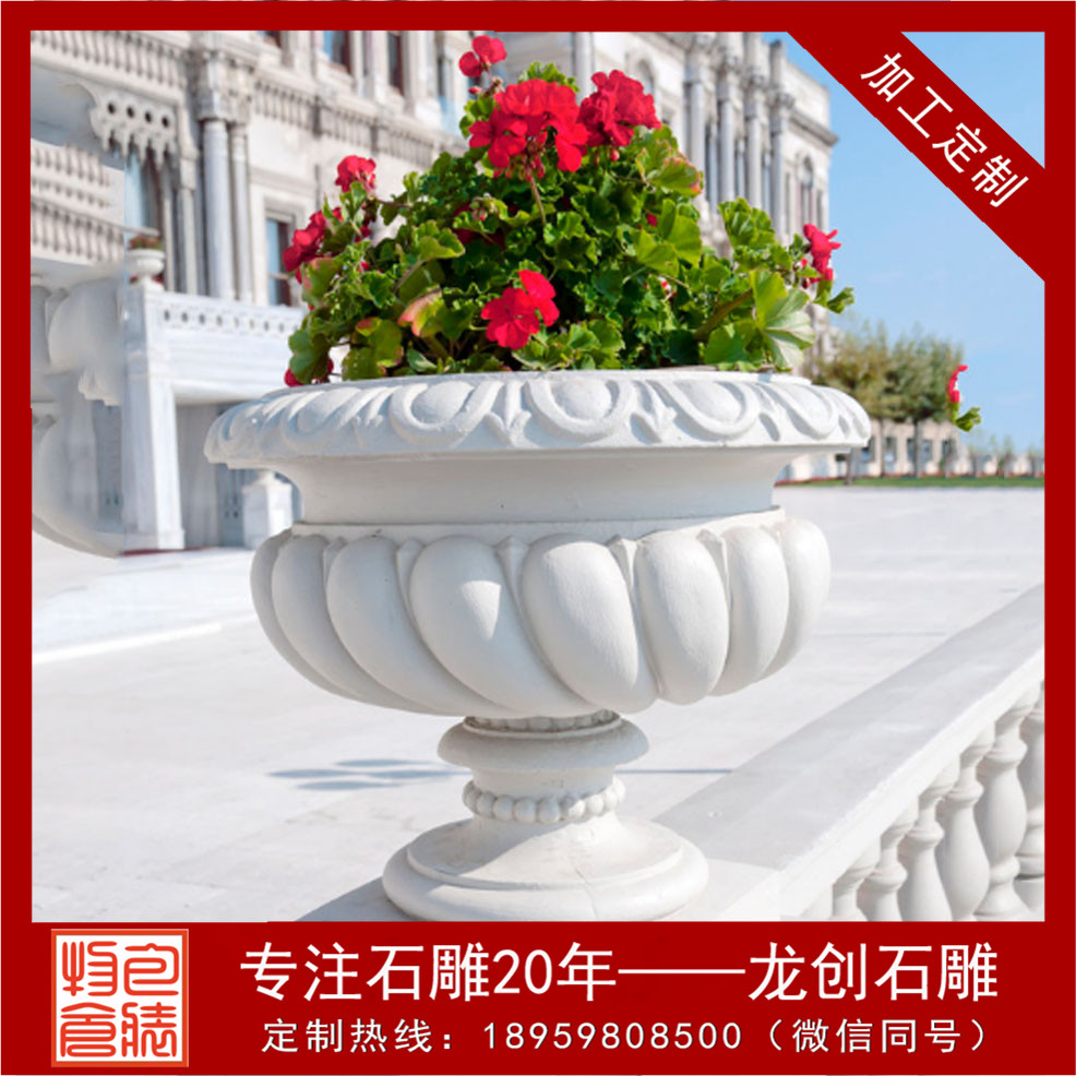 石雕歐式花盆的分類;近年來,一些大型廣場(chǎng)、繁華鬧市等特殊地段,由于施行黃土不露天工程,因而這類地段的綠化美化大多經(jīng)過運(yùn)用各類石雕歐式花盆來完成。在街頭,三三兩兩的石雕歐式花盆,一字排開,石雕歐式花盆內(nèi),各色的時(shí)令花卉栽種其間,經(jīng)過定期地澆水、施肥、養(yǎng)護(hù)后,便收到了不錯(cuò)的景觀效果。街頭擺花的盛行,讓消費(fèi)石雕歐式花盆的廠家有了用武之地。與以往陶盆、瓷盆、漢白玉花槽不同的是,往常用各種石材制造而成的石雕歐式花盆在市場(chǎng)上占領(lǐng)上風(fēng)。