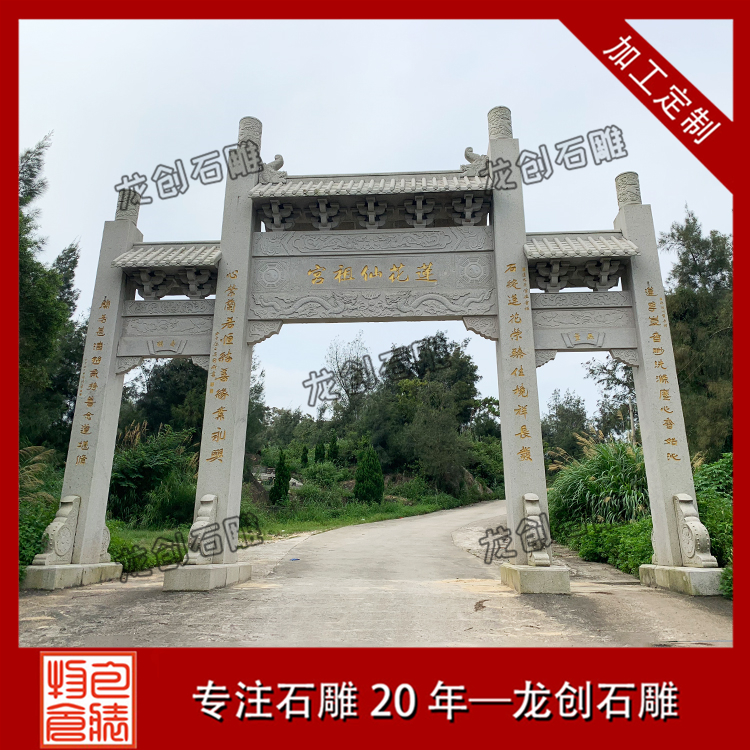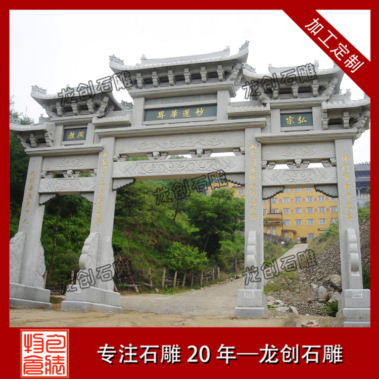 花崗巖石牌樓廠家龍創(chuàng)石雕生產(chǎn)的石牌樓古樸典雅、新穎美觀,無論人物或動(dòng)物都栩栩如生,成為提升形象、營(yíng)造古典文化的一大特色。我廠專業(yè)制作設(shè)計(jì)各種石牌樓,青石牌樓定制,在石雕行業(yè)中有著專業(yè)的技術(shù)團(tuán)隊(duì),可以為每一個(gè)地方設(shè)計(jì)出具有他們當(dāng)?shù)匚幕氖茦?,龍?chuàng)石雕全體員工熱誠(chéng)歡迎您前來參觀。