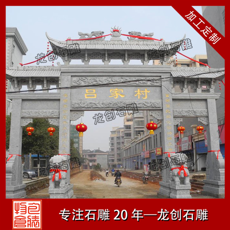 正常情況下,普通三門形式的農(nóng)村石牌坊報價在15-30萬元之間,但是每個客戶要求雕刻的圖案和制作的尺寸都不一樣,所以價格會有差異,我們要根據(jù)自己村莊的地理空間大小和財力選擇定制適合自己村莊的石牌坊大門。