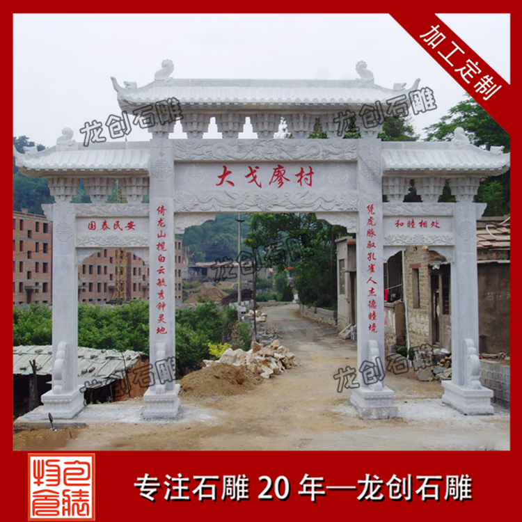 石牌樓是我國建筑中的藝術(shù)代表,集中展示了我國雕刻文化,也能夠探索到不同歷史時期的故事。石牌樓如今建造應(yīng)用多,尤其在新農(nóng)村村口石牌樓設(shè)計制作及選購中,因為修建石牌樓是為了彰顯新農(nóng)村面貌,不少新農(nóng)村建設(shè)也都會作為重點設(shè)計考慮。那么新農(nóng)村村口石牌樓設(shè)計制作及選購有哪些注意事項? 下面由村口石牌樓廠家,龍創(chuàng)石雕為大家介紹。