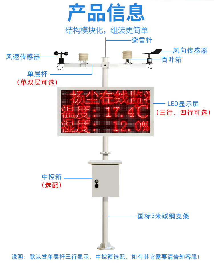工地在線揚(yáng)塵監(jiān)測儀整體采用兩節(jié)式立桿式固定安裝,立桿可放置信號匯集柜,可固定戶外LED屏,方便室外任何環(huán)境安裝。