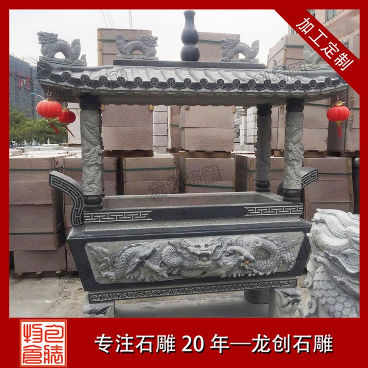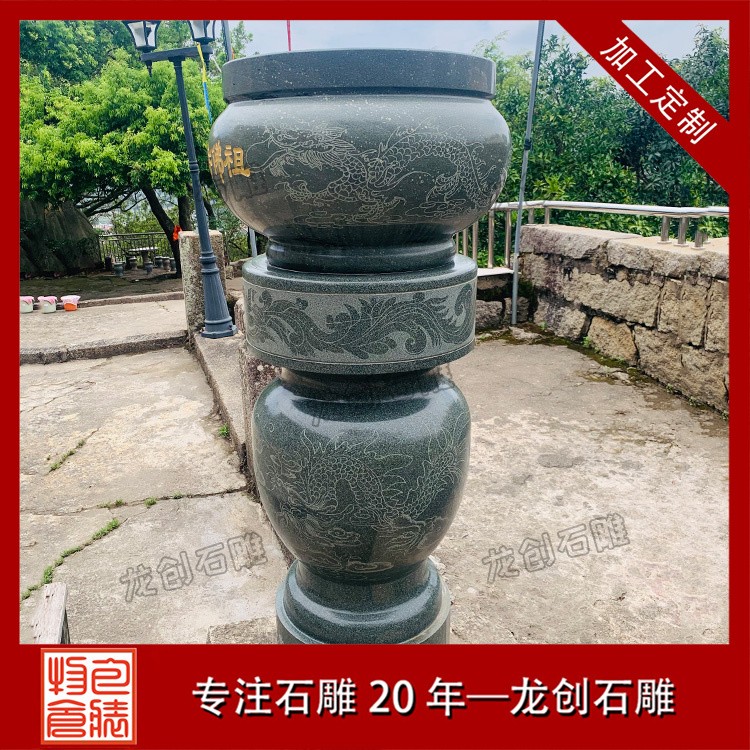 適用場景:花崗巖石雕香爐常用于大型寺廟、佛堂等場合,其堅(jiān)固耐用的特性能夠經(jīng)受住風(fēng)吹雨打,歷久彌新。