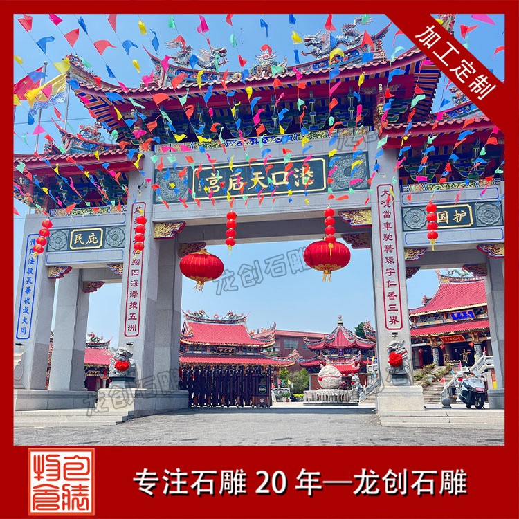 寺廟文化在中國有著悠久的歷史,寺廟不僅是宗教信仰的象征,更是人們精神生活的重要寄托。而在這個文化背景下,寺廟的建筑風(fēng)格、裝飾藝術(shù)同樣具有深厚的內(nèi)涵。位于惠安的惠安縣龍創(chuàng)石雕工藝有限公司,憑借其精湛的石雕技藝,在寺廟三門五樓石雕牌坊的制作上,結(jié)合了傳統(tǒng)工藝與現(xiàn)代設(shè)計的工藝。