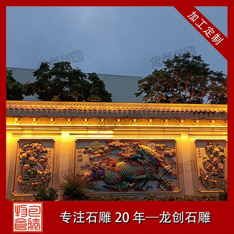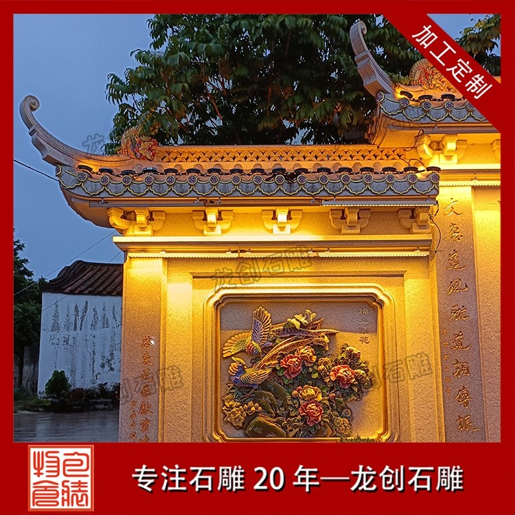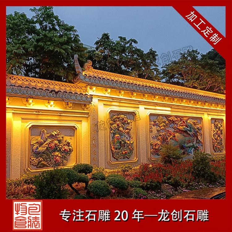 其二,意境含蓄內(nèi)斂,彰顯中式人文情懷。中式庭院講究“藏而不露”,石雕照壁浮雕恰好契合這一美學(xué)理念,既巧妙遮擋院內(nèi)景致,避免“開(kāi)門見(jiàn)山”的直白,又以浮雕紋樣傳遞美好期許——龍鳳呈祥彰顯尊貴,松鶴延年寄托福壽,鹿竹同春寓意平安,山水花鳥(niǎo)展現(xiàn)自然之美,讓冰冷的石材承載起溫暖的文化內(nèi)涵與家族期盼。