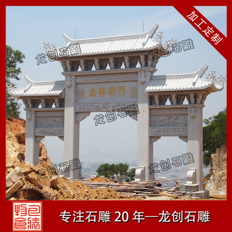 大型石雕牌坊制作作為古代建筑的一個典型代表,它的存在是對古代建筑比較好的詮釋也是對現(xiàn)代建筑應用的一個很好的體現(xiàn)。其中,寺廟大門石牌牌坊這種仿古建筑,無論造型、圖案都是有講究的,尺寸也是經(jīng)大師研究確定,圖案精美,寓意深遠。